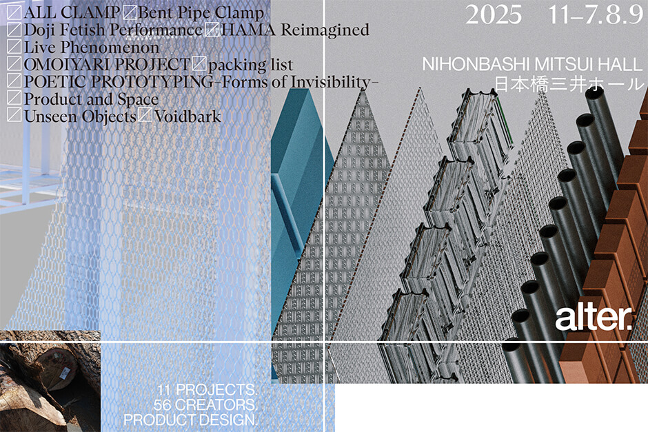 次世代を担う多様な領域のクリエイターによるプロトタイピングやコラボレーションを促進し、オルタナティブなプロダクトデザインの在り方を提示する実験的なデザインイベント「alter.」。