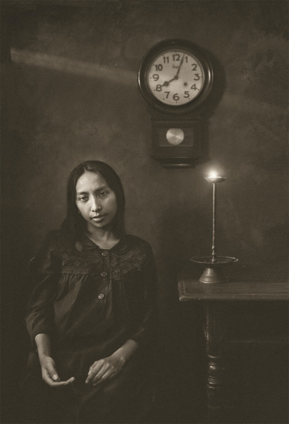 台北の士林にある教会を小さく温かい美術空間とし、Nikon FM2や標準レンズ、反射板、遮光布、そして光が入る大きな窓という簡素な条件下で撮影された。