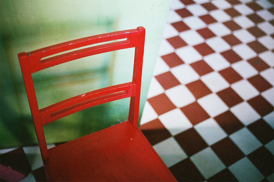 ⽇常の⾵景に潜む美しさ、物語性を直感的に捉えるRhodesの作品群は、光や⾊、質感への繊細な感度を通して、何気ない瞬間を詩的で奥⾏きのあるイメージへと昇華する。 また構図においては、偶発的な視点や⼀部だけを切り取る⼿法を⽤いることで、観る者がその瞬間に⽴ち会ったかのような臨場感を⽣み出す。 一見ありふれた被写体は静けさとほのかな緊張が共存する独特の空気感をまとい、鑑賞者に新たな視点や発⾒を提供する。