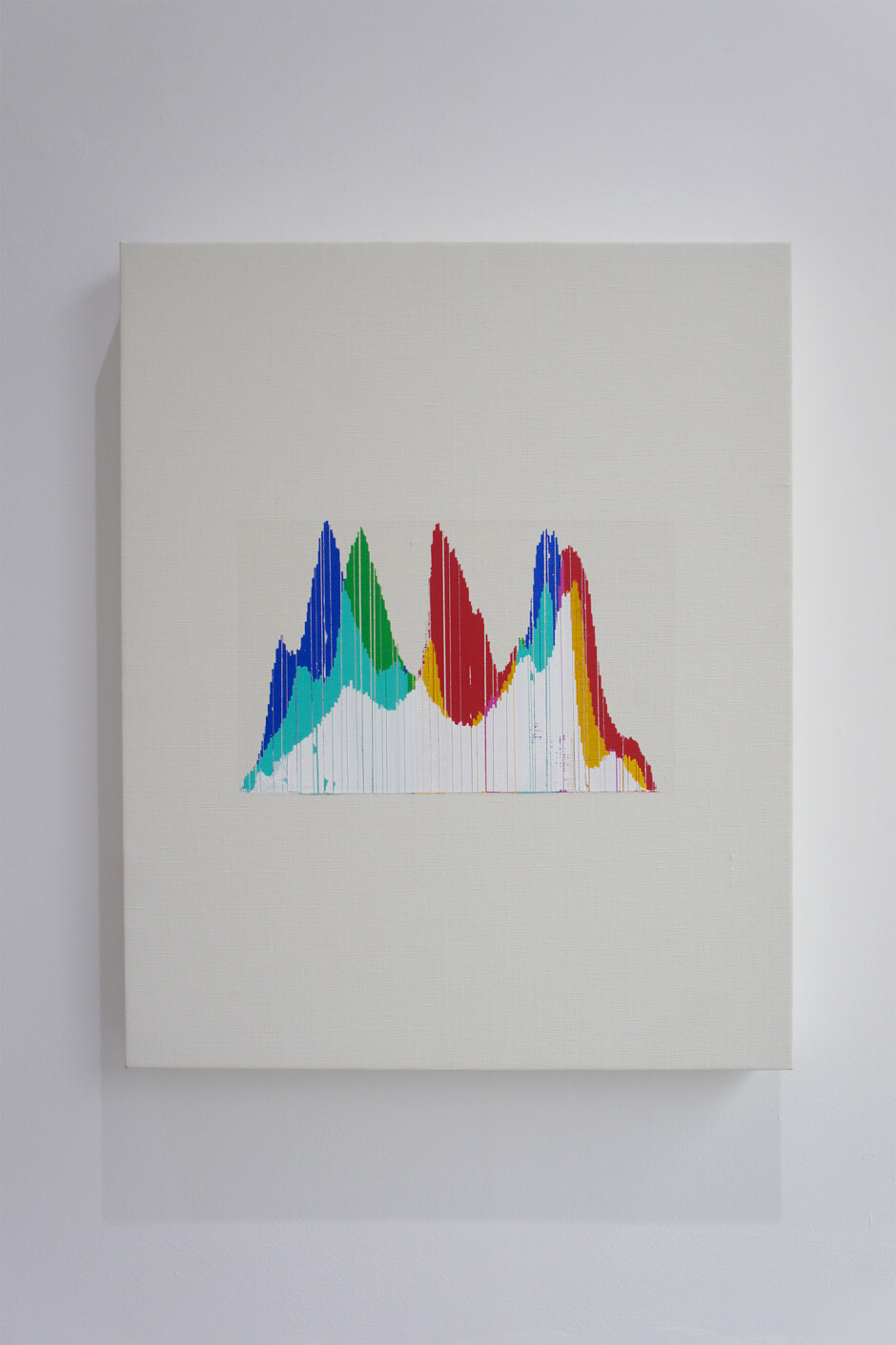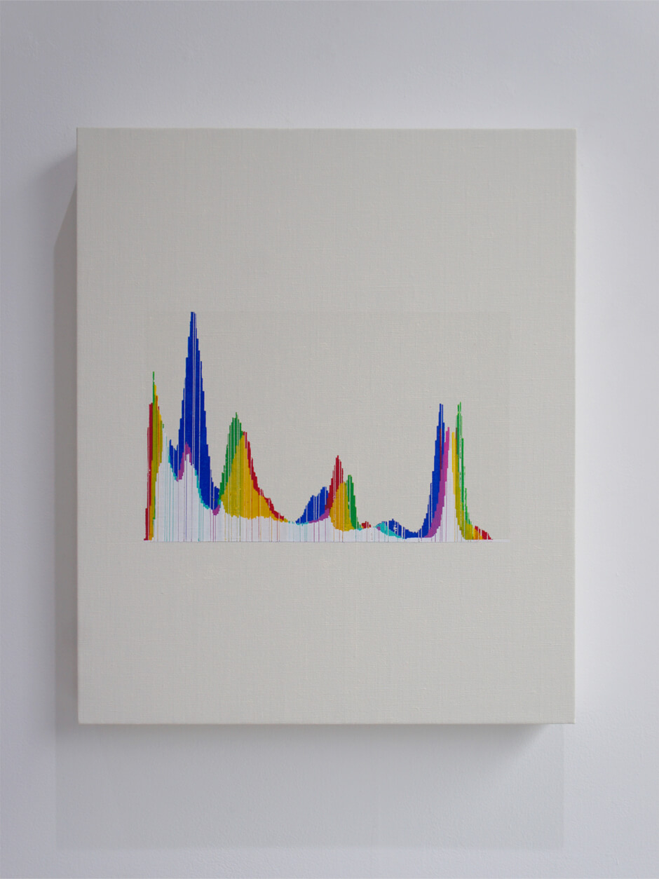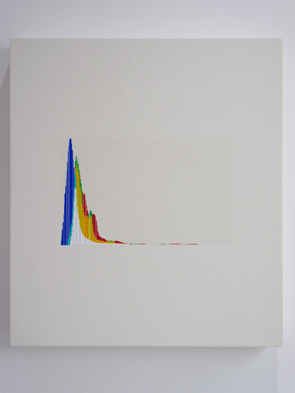 本展は、現代における写真を独自の解釈で表現する「RGB」シリーズの新作を中心に構成。 「RGB」は、カロタイプ写真の発明者である William Henry Fox Talbotが、自身の技術を「光で絵を描く」を意味する「photogenic drawing」と呼んでいた事実に着想を得たシリーズ。 安瀬はいわゆる「名画」として広く認知されている絵画の画像をインターネット上から入手し、同寸法で製作されたキャンバス地に、写真を構成するピクセルの明るさの分布をグラフ化したヒストグラムを描く。