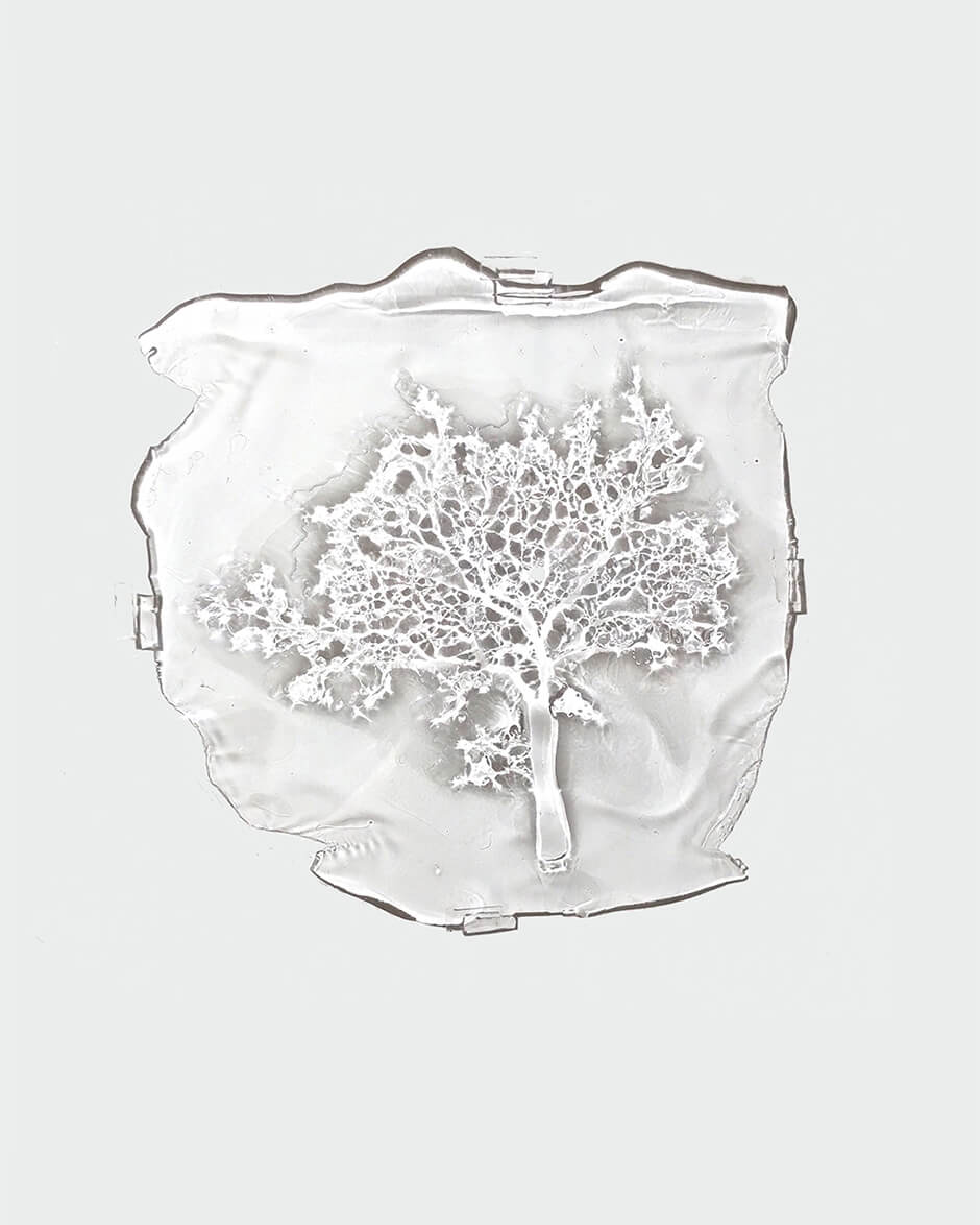 本展では、写真から支持体を解放する試みとして相川が2020年より取り組んでいるUVレジンを用いた写真作品を発表。