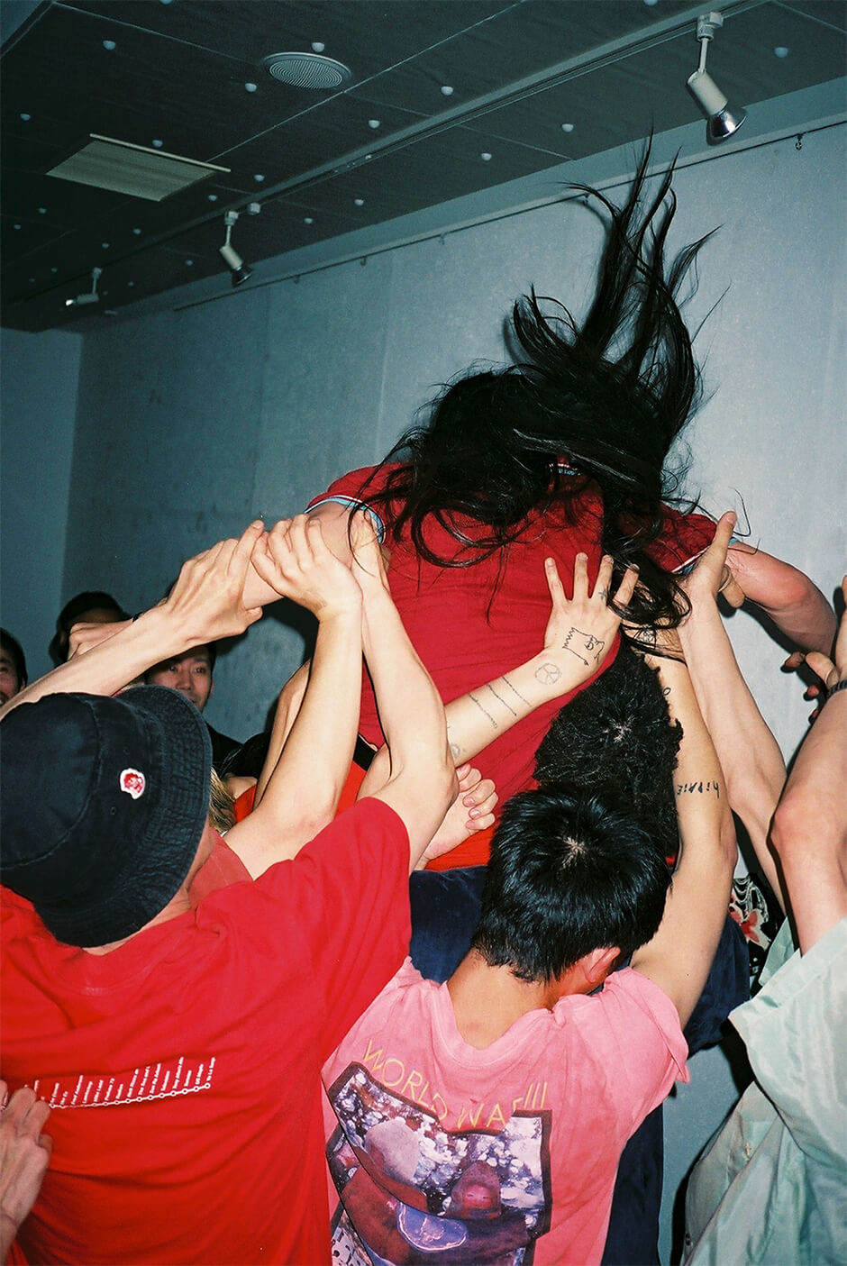 本展では、3人の写真家がバンド GEZANを被写体に撮影した写真を、ギャラリーの1フロアごとに展示構成を分けて発表。