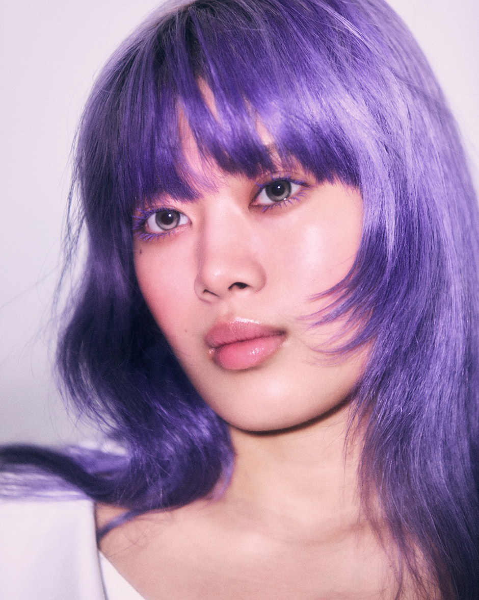 NAOKO:髪の色に合わせたパープルのまつ毛がお気に入り。普段はリップも濃いめの色を使うことが多いのですが、今日は生っぽさがあって、素の自分らしさがにじむ仕上がりに。ちゃんみなさんはよく「アーティストの私たちだって花と同じ生き物なんだよ」と言います。生き物としての感情や経験があってこそ、音楽は生まれる。だからこそ、こうした自然体の雰囲気も大切にしたい。メイクを見た瞬間、その言葉を思い出しました。