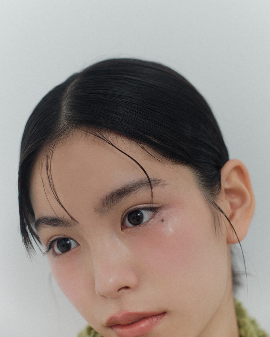 頰骨の高い位置から全体にぼかすように広げれば、微細な艶が光を捉え、瑞々しく澄んだ肌印象へ導く。