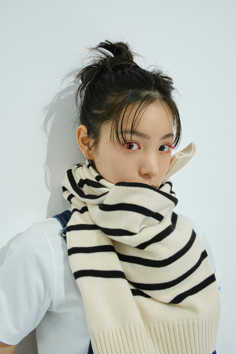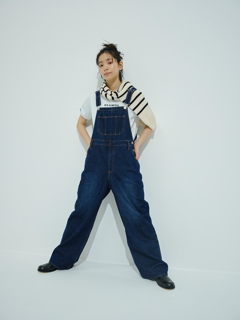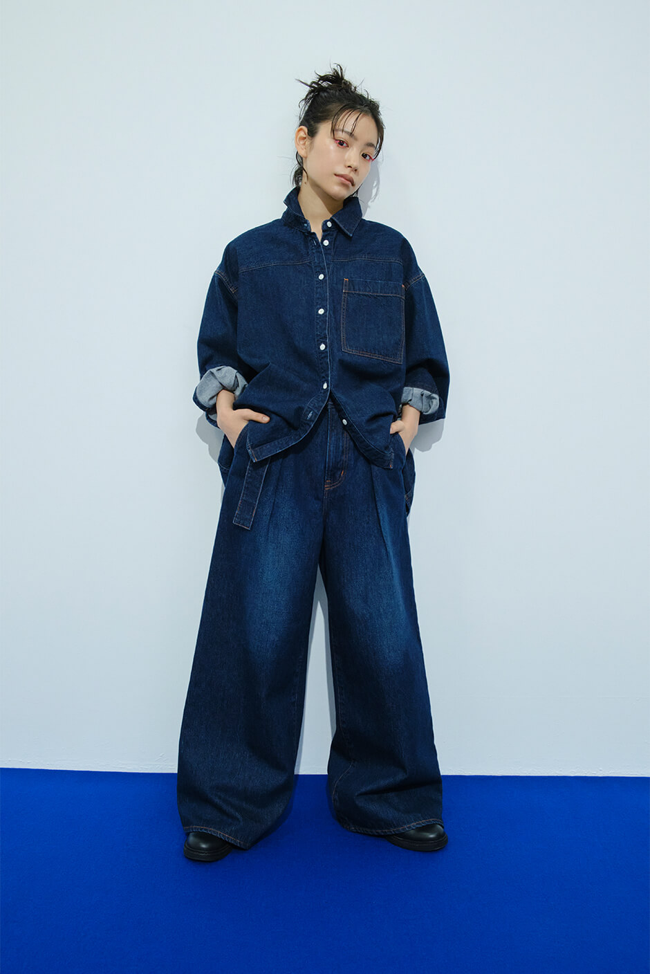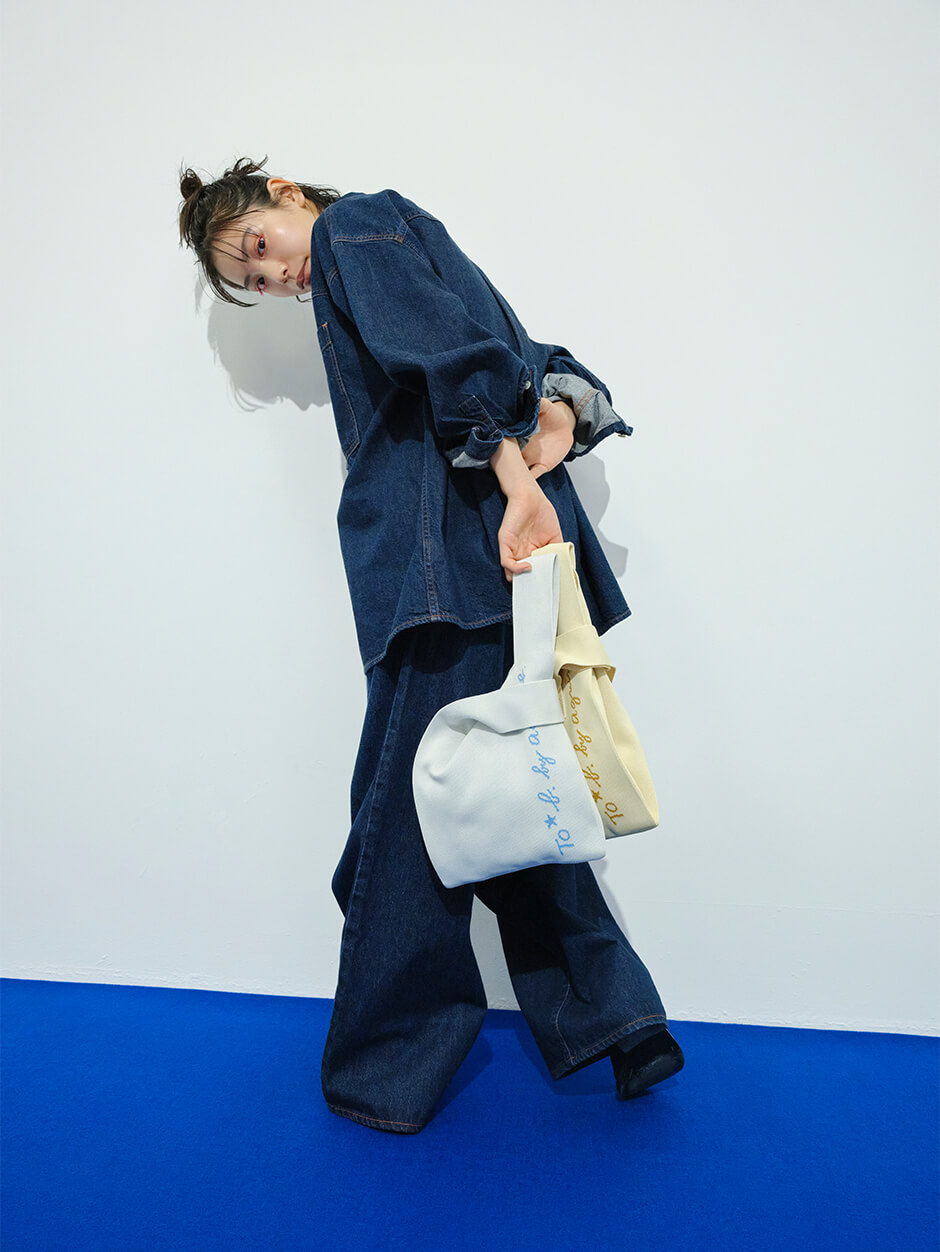この2つの価値観が溶け合い、デニムを軸に静かに立ち上がるコレクションを當真あみがまとう。