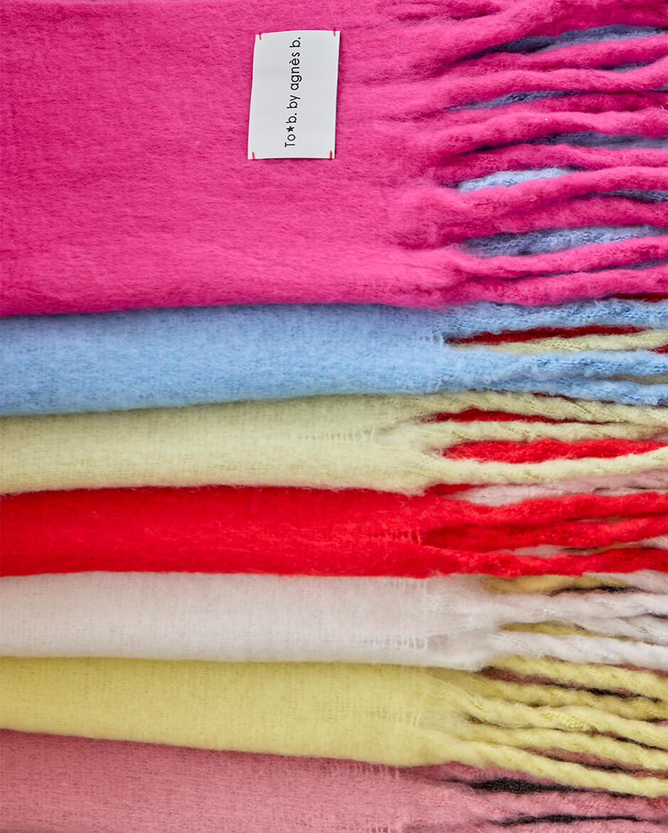「TO B. BY AGNÈS B.」より、色彩豊かな新作マフラーシリーズが発売中。