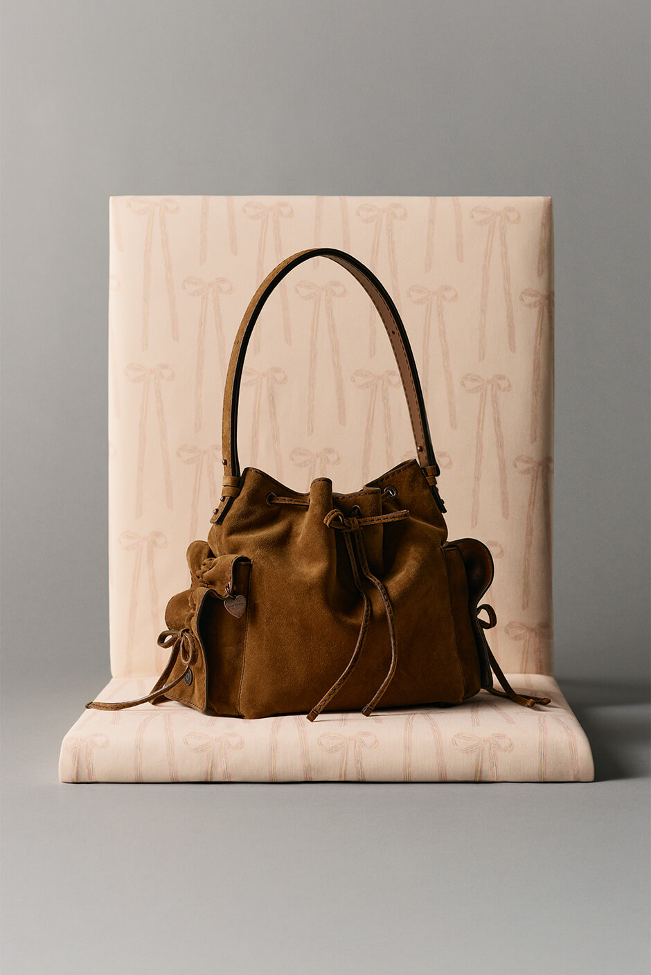 さらに、柔らかなスプリットレザー素材を使用したマルチポケットバケットバッグやモヘアチェックスカーフなど、冬の装いを豊かにするアイテムが登場する。