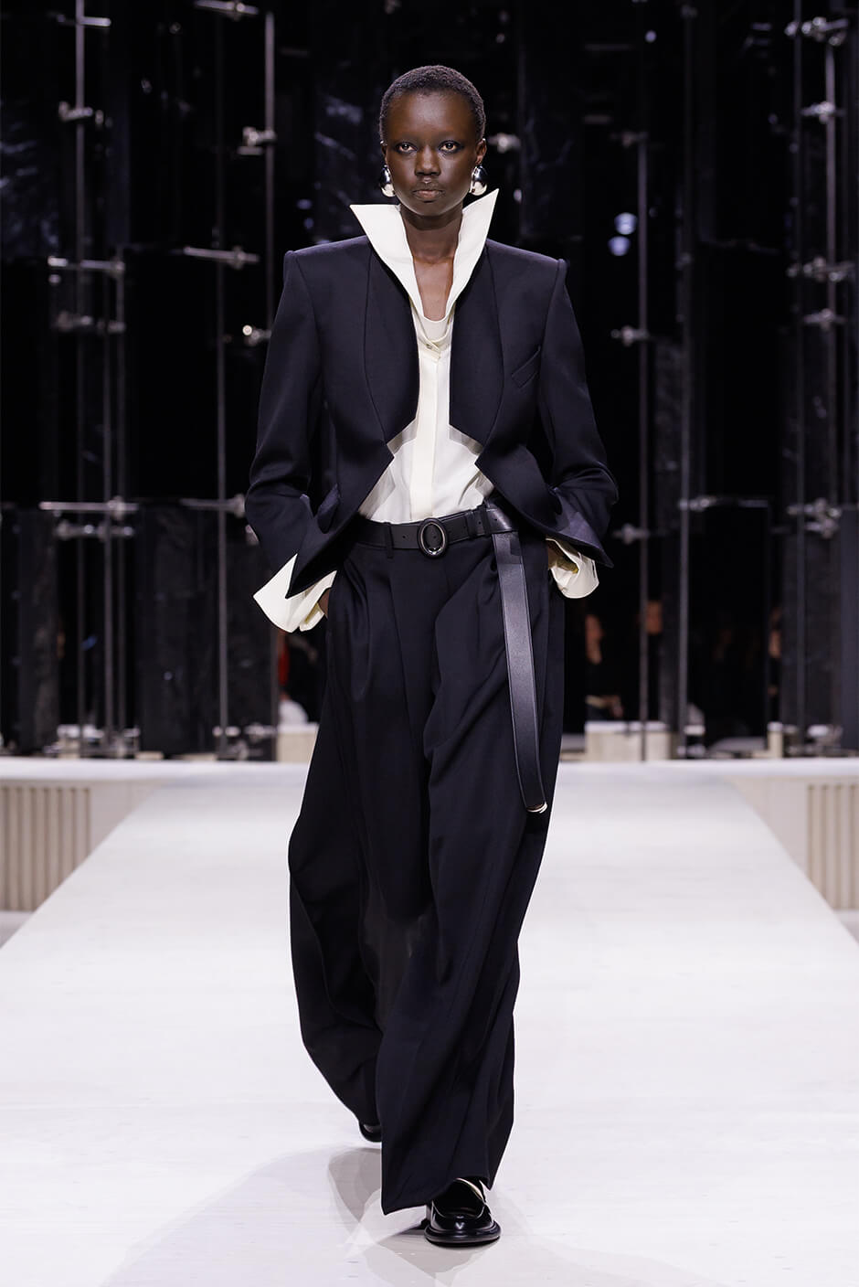 彼女がメゾンに加わって以来築き上げてきたカッティング、テーラリング、そしてシルエットの基盤をもとに、現代女性が持つ力強さを直感的に描き出す。