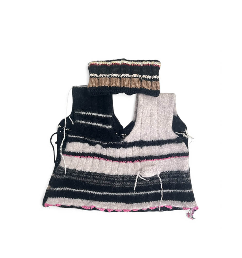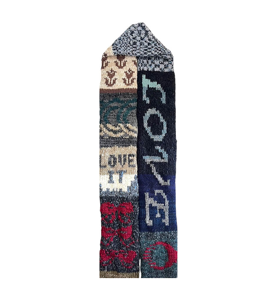 糸の個性、糸の導きによる創造性がデザインへ繋がっていくという感覚に基づき、余った糸やリサイクル素材に新たな命を吹き込むように、糸と向き合いながら製作を続けている。 www.instagram.com/loveitoncemore_official/