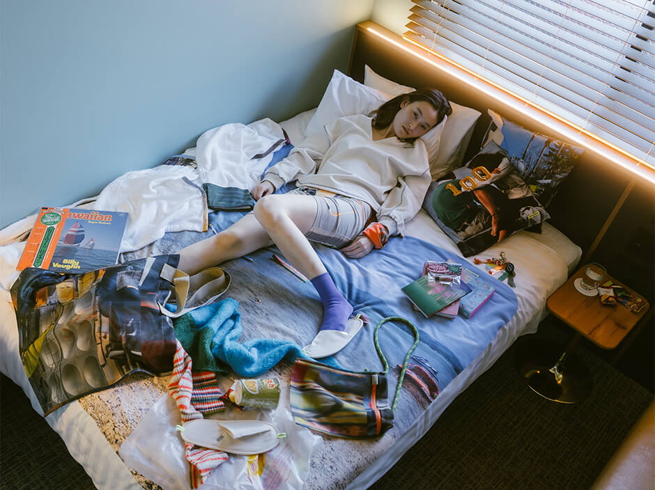「日常の延長にあるどこかへ行きたい」という気持ちに寄り添い、肩書きや役割から少し離れた自由な時間を提供したいというデザイナー 横澤琴葉の想いが、今コラボレーションの核になっている。