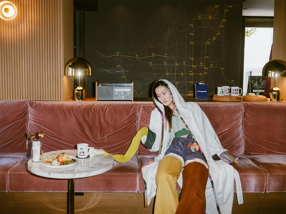 京都を拠点に独自の宿泊体験を提案しているHOTEL SHE, KYOTOと、日常の感情や出来事を装いに昇華する「KOTOHAYOKOZAWA」。