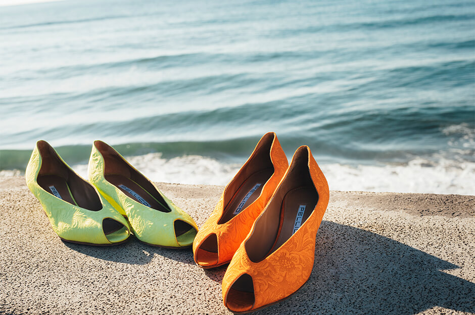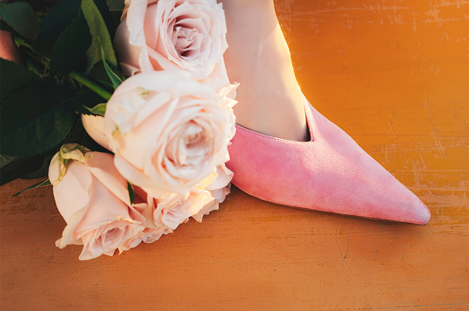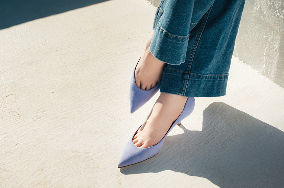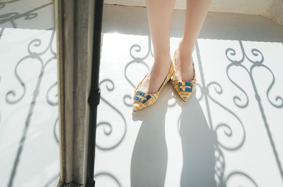 パンプスやサンダルといったエッセンシャルなアイテムに添えられた心浮き立つ要素が、足元に気品と軽やかさを宿す。