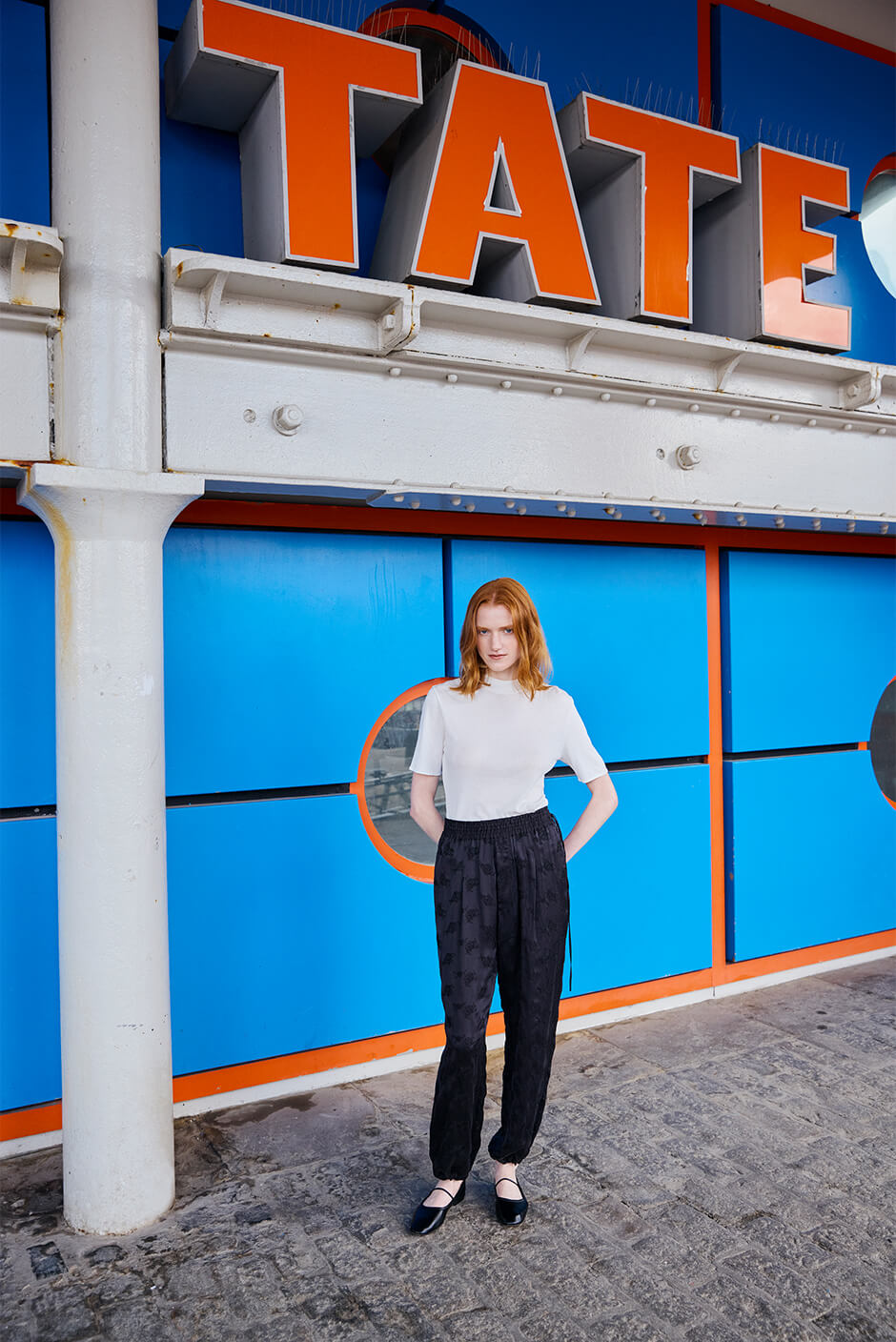 「きちんとした装い」を崩すのではなく、今の感覚へと更新するという美意識が、静かな強さと知的な品格を浮かび上がらせる。