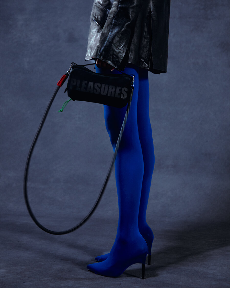「TOPOLOGIE」を象徴するシルエットに、「PLEASURES」の挑発的なムードを重ねることで、旅の合間に流れる時間そのものをアイテムに昇華している。